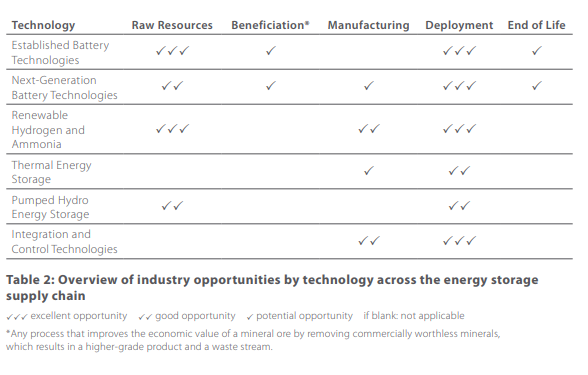 This report identifies significant energy storage technology opportunities for Australia across global supply chains, as summarised in Table 2.